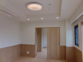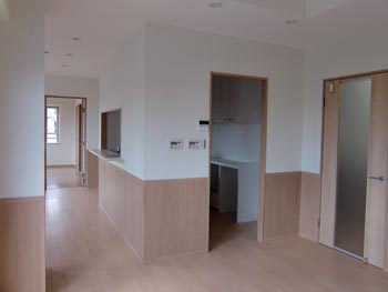 | □ 3階 施主住戸 リビング | □ 3階 施主住戸 リビングからダイニングキッチンをみる | |
