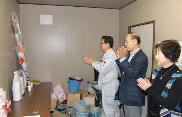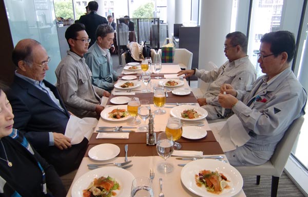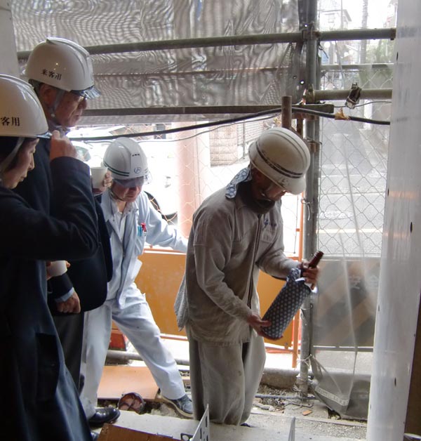 | □ 2015/12月 本日は上棟式。現場事務所で幣束(へいそく)に拝礼、現場でお酒、お塩、洗米で四方固め。直会(なおらい)は精養軒で洋食をいただく。 | ||