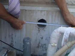 ◇台風も去り快晴の本日、昨年より、某大手ハウスメーカーの現場に疑問を感じられたお施主様より、途中から監理を依頼されたものです。 竣工1年にして、一部アンカー筋の破断の可能性ありとのこと、給湯器スリーブ部分を撤去の上確認、ラインスコープという胃カメラのように内部を覗けるカメラで調査したものです。 |