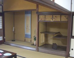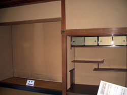 | □2007/9/20THU 日野K・N邸リフォーム工事打合せへ向かう途中・・・日野市甲州街道沿いにある歴史的建築物「日野宿本陣」 、日野宿は江戸時代甲州街道中の 重要な拠点で幕府の支配は緩やかで二人の名主と配下の組頭による農民自治が永くつづきました。数年前に住宅の仕事の途中でここを訪れたことがあるのですが、 その時は、「お蕎麦屋さん」でした。 そのつもりで寄ったら日野市の文化財として、有料で公開されていました。私は、新撰組が大好きで特に、副長「土方歳三」に興味を覚えます。 幕末日野宿の名主が佐藤彦五郎で、その妻のぶは、土方歳三の姉で、義兄に当たり、近藤勇が浪士組への参加、つづく新選組の結成などについて相談を受け、 彦五郎はその都度深い理解を示し、精神的・財政的支援を惜しまなかったとのこと建物の造りは、非常によく技術の高さと,伝統に忠実なつくりでした。 床の間のつくりで、萩の木戸邸が床の間に天井の竿縁が、竿差しであるのに比較すると、基本どおり造られていた。 | |||