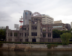 広島平和記念公園・・・原爆ドーム、大正時代広島県産業奨励館として建てられた。原爆により大破、被爆当時のまま保存されている。 原爆資料館・・・丹下健三氏の設計で有名、学生時代、建築の修業時代何度か見学したが、丹下先生が世に出た作品で日本現代建築の象徴と再確認した、資料館の中は1度見学時、あまりの悲惨さに衝撃が大きく、再び見ることが出来ない。 | ||
