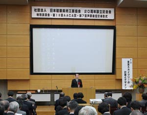 | □2008 12/3 aaca20周年記念設立会・・・またまたまたまた総合司会の大役おおせつかリ緊張の一時でした。 記念式典では、文化庁、建築学会会長のご挨拶、特別記念講演会「東京スカイツリーの計画とデザイン」、AACA賞表彰式、懇親会と目白押しでした。 |