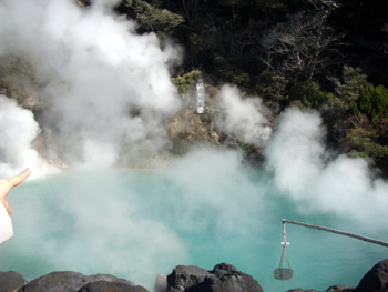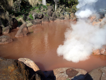 □2008/3/10 別府温泉海地獄・・・青池と赤池同じ敷地でお湯の成分の違いでこれほど違う風景となる |