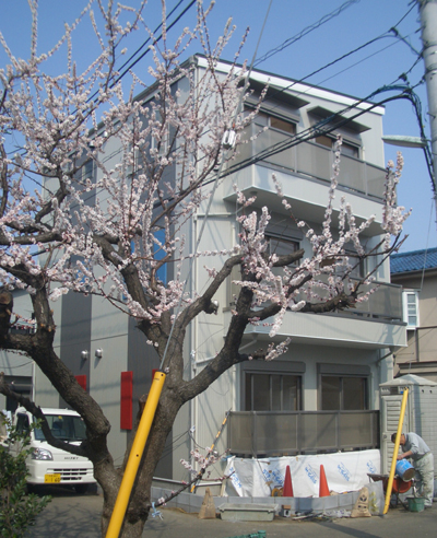 | □2008/3/12 府中市A共同住宅計・・足場も取れ今月末完成を目指し、工事進行中です。本日は、完了検査に備え、最終点検、建物手前の梅の花も咲き、ようやく春の気配が感じられる今日この頃です。 | ||||