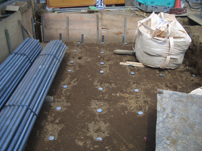 □2008/4/3 習志野市S邸・・・地盤改良工事RES-P工法打設後、電気・設備等の定例会議 |