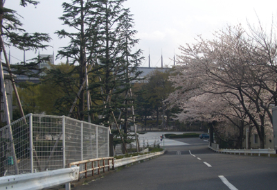 □2008/4/4 府中市A共同住宅・・・写真撮影の帰り道、桜並木から味の素スタジアムを見る