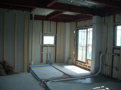 □2008/4/11 STUDIO船堀M新築工事・・・工事進む。外壁ALC版工事・サッシ取り付け・設備配管など |