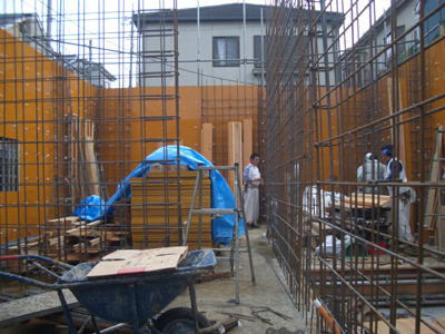□2008/4/24 習志野市S邸・・・コンクリート打ち放し仕上げ 一番大事な鉄筋の配筋と化粧型枠本日検査並び、詳細部分の確認。 来月10日にいよいよコンクリート打ちこれでで出来具合が決まる。 |