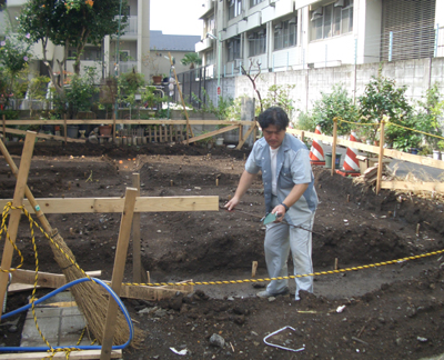 | □2008/11 三鷹市O邸・・・根伐り工事、遺跡調査会(三鷹市)による 文化財調査の立会い、この地域は仙川沿いの高台で 日当たりが良いため弥生時代の遺跡が多い。 昨夜の豪雨で水が心配でしたが、水はけの良い土壌で安心。 |
