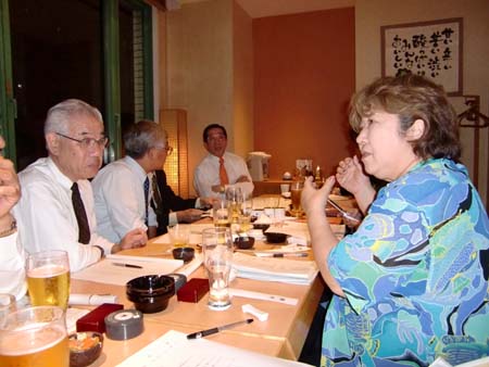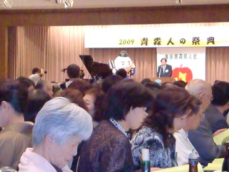 青森人の祭典・・・県人会へ出かける。県人会会長が高校の先輩でもあり、日頃親しくしていただいており、今年は参加、物産会では、ハッピを着て売り場に立ちました。懇親会三村県知事の挨拶・物産会で知事・小山内会長・売り場風景・2次会での懇親会(場所:上野精養軒) |