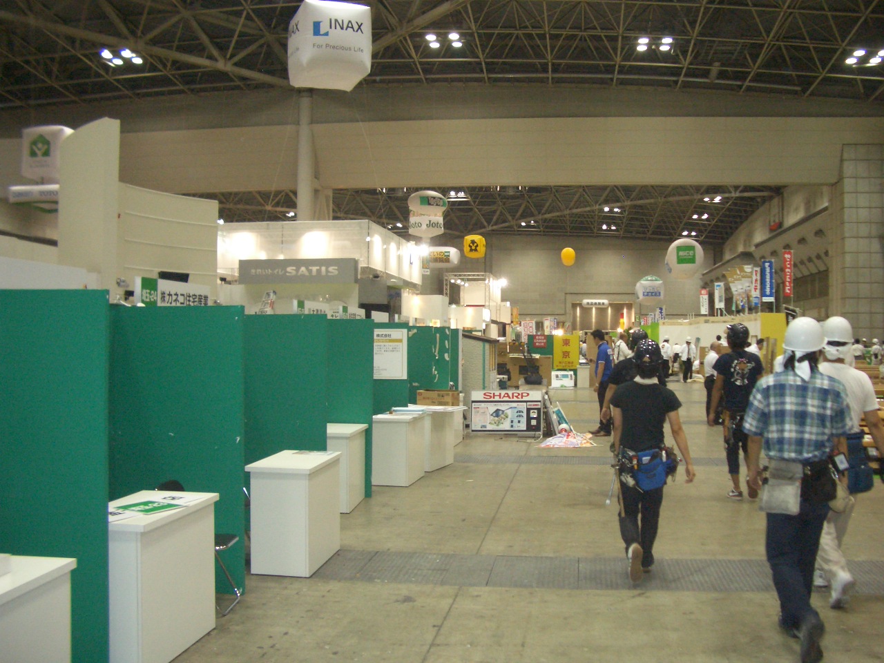 □2009 8/8・・・八王子T邸新築祝いで、お施主さんを交えて、写真右棟梁のNさん | □2009 8/9・・・わくわくフエア模型・パネルの搬出・・・今年も東京ビックサイトで行われた。 | ||||||||||||