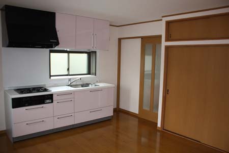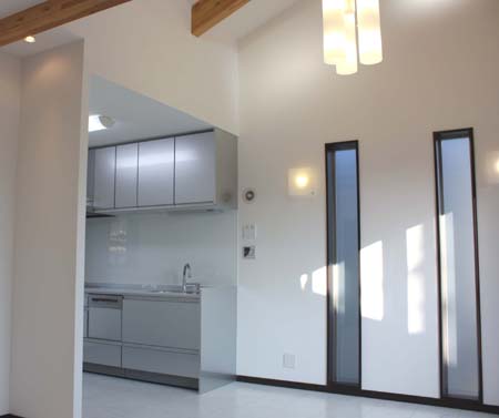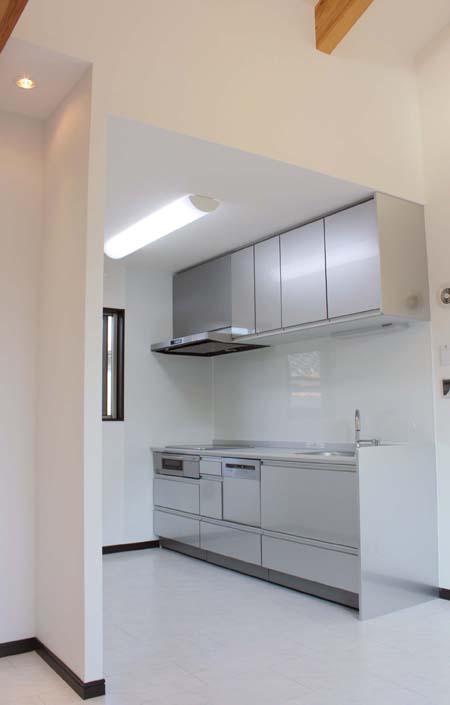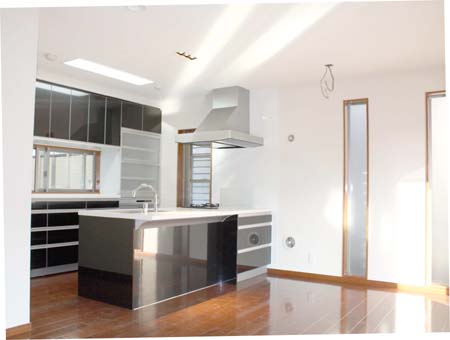 習志野S邸・・・2世帯住宅1階親世帯キッチン・坪庭・2階子世帯ダイニング・キッチン