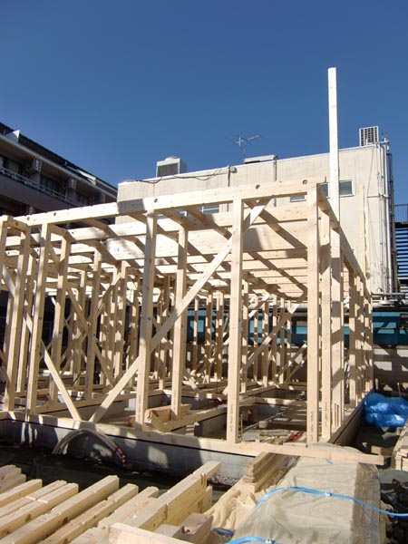 | 2010/12/28 調布市I邸・・・2階まで棟上完了を確認に現場へ! |