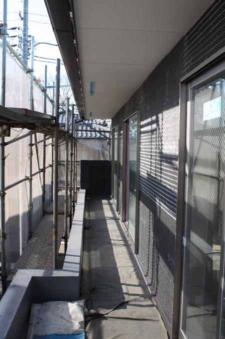 2010/12/18 三鷹市Y邸・・・現場打合せ外壁工事、内装工事準耐火建築床に不燃材。壁天井も15mmのPBと重厚感がある。 |
