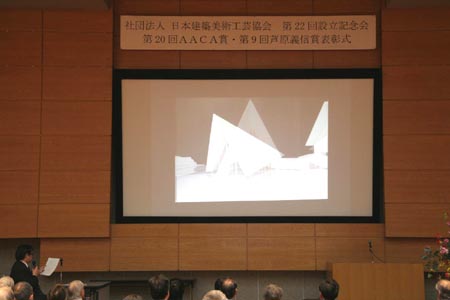 | 2010/12/7 22年度 設立記念会・協会賞表彰式並びに懇親交流会・・またまたまたまた総合司会の大役おおせつかリ緊張の一時でした。 記念式典では、文化庁挨拶、AACA賞表彰式,記念写真撮影・・・・・・・受賞者プレゼン・懇親会岡本副会長の挨拶出始まり和やかのうちに終了いたしました。\ |