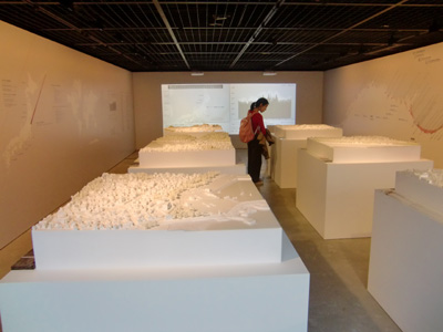 | 2011/11/30 TOTOギャラリー・間 「311 失われた街」展 展覧会では、地震と津波によって大きな被害を受けた岩手県、宮城県、福島県の各都市から14の地域を選び、その街並を1/500のスケールの白模型で復元し展示。この模型は、全国13大学の学生が約3ヶ月をかけて制作したもの。 |