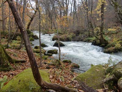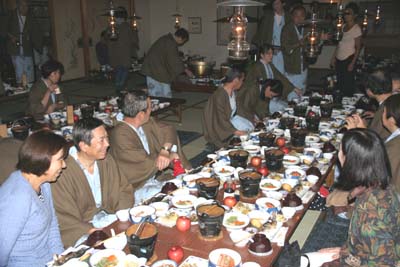 | 2011/11/3 2011弘前景観まちづくりシンポジウム協力委員会による企画旅行・・・新幹線で東京を出発〜青森県七戸十和田で降り、そこから奥入瀬渓流を散策、紅葉の十和田湖へ快晴に恵まれ、爽やかな旅で始まった。写真は奥入瀬渓流・展望台からの十和田湖宿は黒石市青荷温泉ランプの宿、出迎えの主人の気さくな津軽弁にこころがになごむ、電気がなく風呂・食事もランプの灯りだけ、それでも目が慣れてくると結構不自由ない、女性がより美しく見える。 ワイワイ語り合いながらの夕食、岩魚の塩焼き、飾らない田舎料理、昔ながらの鄙びた味わいがある。伝承工芸館館長福士様より地酒2升の差し入れこれがまた旨い。 食事の後、部屋で2次会の酒盛り、初対面の方も多いのに、ふるいなじみと合うようにみなみな盛り上がった夜でした。 |