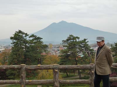 | 2011/11/5 弘前まちなかツアー・・・弘前城より見る岩木山と蒔苗先輩 |