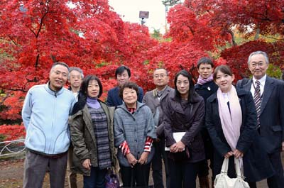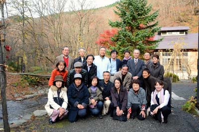| 2011/11/4 青荷温泉ランプの宿で紅葉をバックに記念撮影。 |