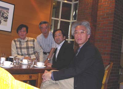2011/11/4 交流会・・・左より相澤東京青森県人会副会長・東東京青森県人会副会長・清藤東京青森県人会会長・長谷川・小笠原弘前副市長 |