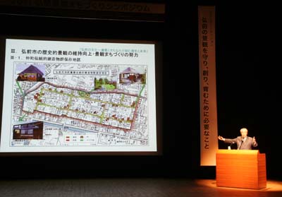 | 2011/11/4 基調講演・・・小嶋勝衛先生(元日本大学総長・理事長)による「弘前の文化〜まちなみが紡ぐ歴史と未来〜」の講演、弘前の文化・遺産を如何に未来に継承するか!についてのお話 |
