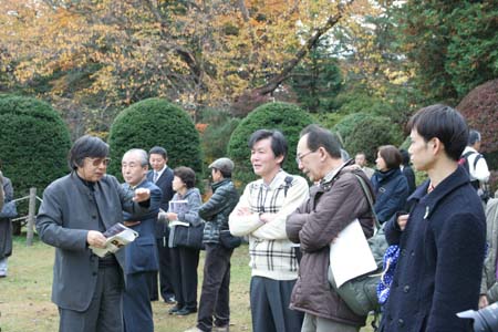 2011/11/5 弘前まちなかツアー・・・旧弘前偕行社見学、中庭にて左の橋本先生の解説 |