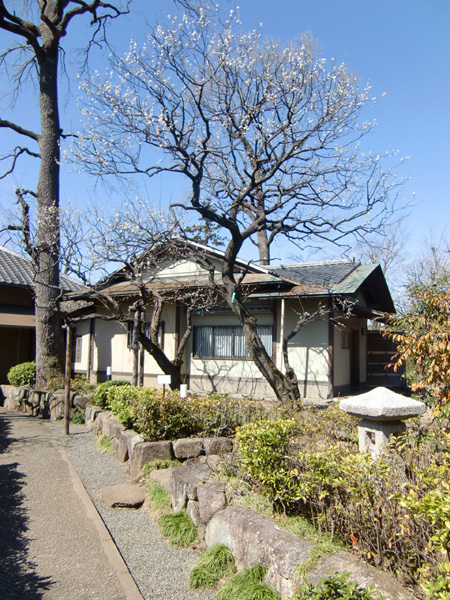 | 2011 3/4 梅の季節・・・晴天の日、風流をあじわおうと、世田谷羽根木公園に、梅見に出かけるほぼ満開。公園の中にある日月庵は茶室となっている。平屋の和風のたたずまいは梅の花とよく合う、 帰りに梅が丘の蕎麦何処長寿庵でおそばをいただく。ビールを傍らにまた味わい深い! |