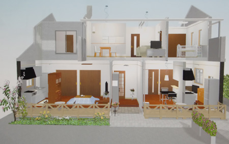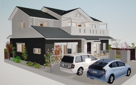 2011 3/26 三鷹E 邸・・・第一回目の提案パース、屋根のパターンをいくつ変えて見ました。 |