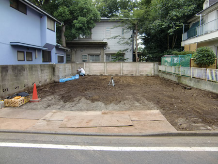 | 2011.8/1 三鷹市E邸・・・解体工事も終わり、再敷地測量・レベルの確認、いよいよ着工です。 |