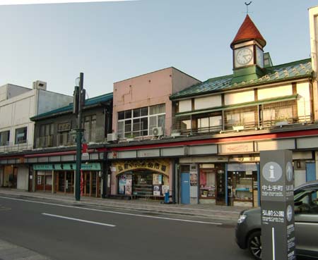 | 日本聖公会 弘前昇天教会(県重宝) | 一戸時計店・開運堂 | 蓬莱橋からの最勝院五重塔 | 旧弘前無人社屋(三上ビル)・田中屋 |