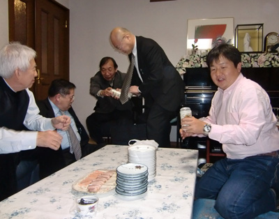 | 2012/1/4 恩師小嶋先生主催の新年会・・・自由ヶ丘の南国飯店で、先輩方に囲まれ先生のご家族もお見えになられ、自己紹介に始まりなごやかな歓談となり楽しいひとときでした |