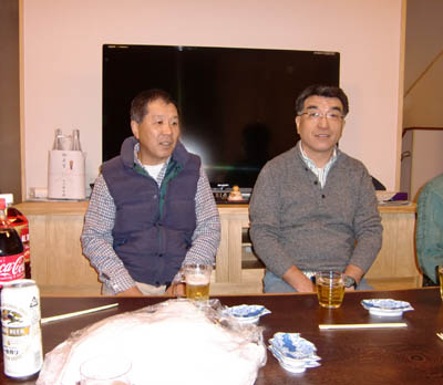 | 2012/1/8 三鷹市E邸竣工祝い・・・お施主さんのお招きで工事関係者が集まり竣工祝い、旧い知り合いのお寿司屋さんの親爺さん親子の専属調理師が料理を振舞っていいただき、最高のおもてなしでした。 |