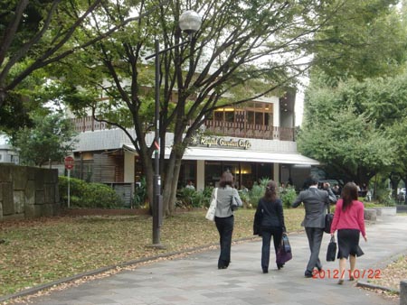 2012/10/5 事務所近くの憩いの場・・・港区青山が現在の事務所近くのいちょう並木の中にあるロイヤルガーデンカフェ、夕方のひと時を ここの屋外ガーデンで一杯これが楽しみの一つ。 |