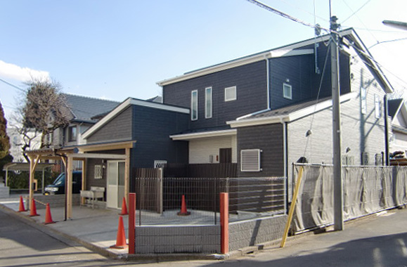 | 2013/1/25 三鷹市S邸・・・引越しも終わり外構工事ももう少しで完成!!!木製下屋部分は、野菜の無人販売コーナー |