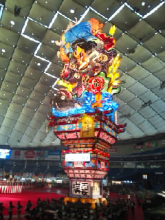 | 2013/1/16 ふるさと祭り東京・・・東京ドームで開催している全国各地のうまいものが集結、休日はあまりに混み合うため平日に出かける。うにいくらの海鮮弁当と近江牛のA5ランクのステーキ丼を買い求めビールをのみながら、ふるさと五所川原の立ねぶたを堪能そのスケールの大きさは圧巻である。 |
