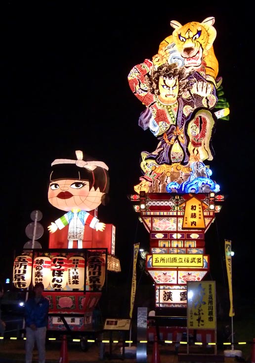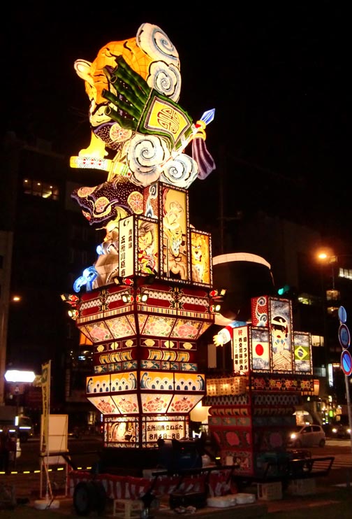 | 11/1 事務所近く外苑銀杏並木の青山祭り・・・青森県五所川原市のたちねぶたがゲートに展示されていた。 |