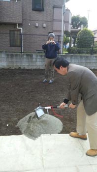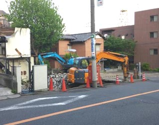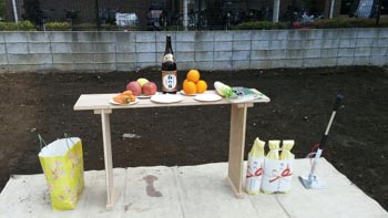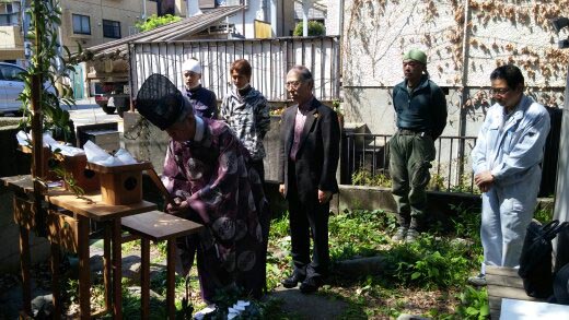 4/16(木) K共同住宅新築工事 現場解体作業。敷地の中にある大木の伐採お祓いをする。
