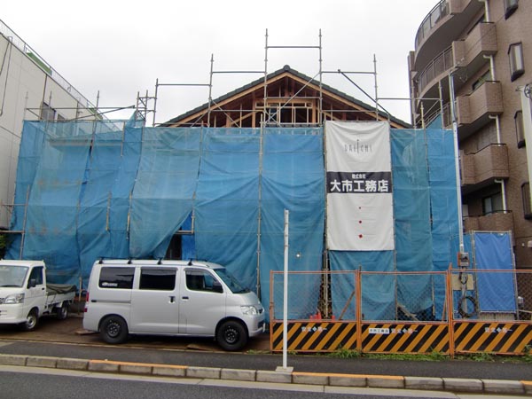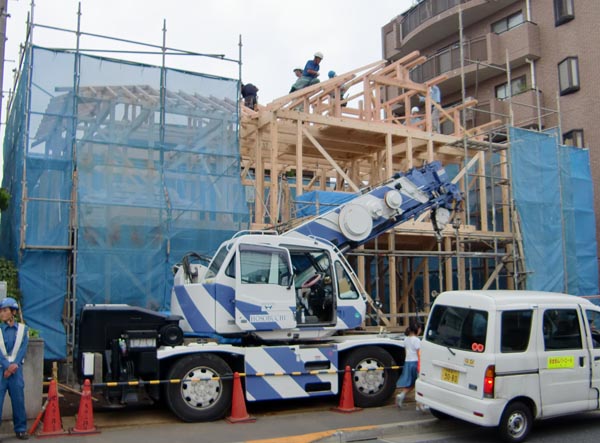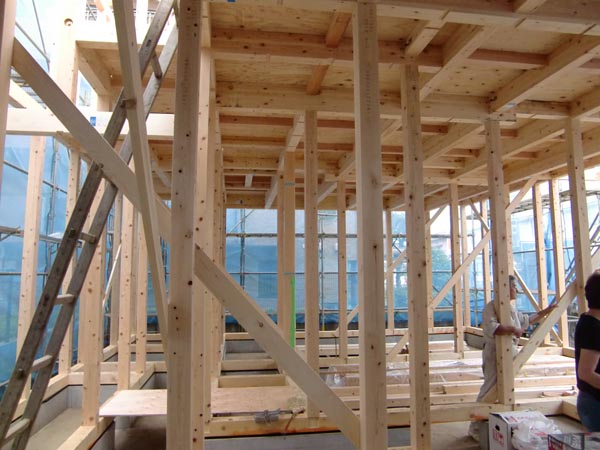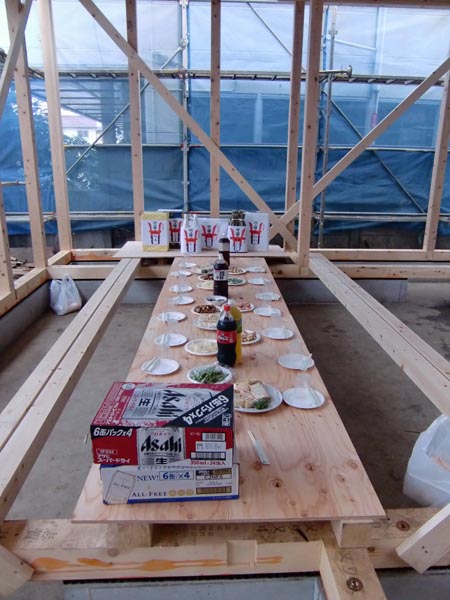 | 6/13(土) 三鷹H邸上棟昨日の雨が心配されたが、予定通り棟上げ完了。 | 上棟式お祝いと、四方へ御酒お米お塩でお祓いの儀式 | |||||||||