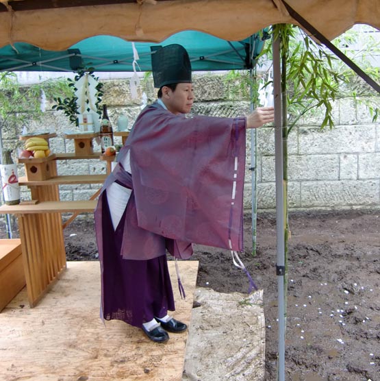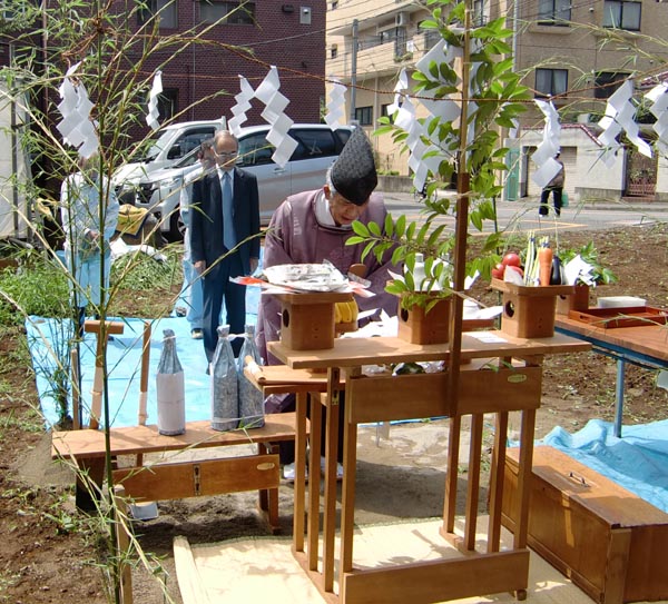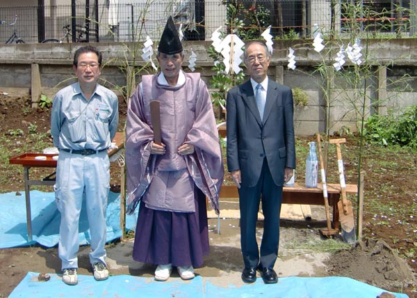 | 7/6(月) 三鷹S邸地鎮祭。雨の中テントを張りながら、お祝いする。 | 7/10(金) K邸地鎮祭。昨日の雨もうそのような快晴、これから工事開始! | |||||||||