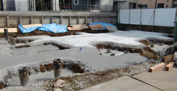 | 8/11(火)K邸共同住宅定例会議・・・鋼管杭打設後杭頭処理 | 8/11(火)三鷹H邸・・・外装工事・内装工事も進む | |||||||||