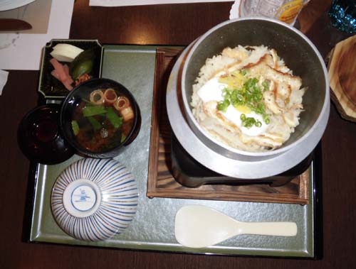 | 5月3日(木)本日、「深川めし」を食べに森下「割烹みや古」へ出かける。途中「深川神明宮」にお参り、当神社は深川の地を初めて開いた深川八郎右衛門が創建した「深川発祥の神社」 「深川めし」は江戸時代、深川の漁師たちが仕事の合間に船上で食べていた「ぶっかけめし」がルーツ、竹わっぱのふたを開けると立ち上がる磯の香りが食欲をそそる。 |