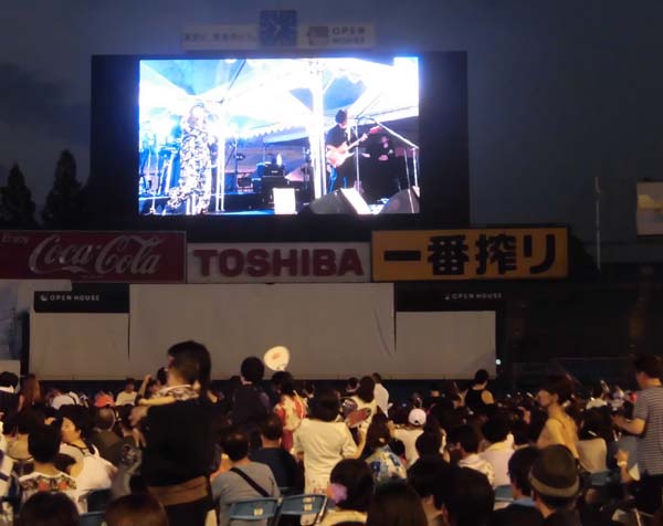 | 8月11日(土) 神宮花火大会・・・今回は神宮球場のアリーナ席をキープ、夕方より大勢の人が出る。花火の前にラップグループ、懐かしいパフィのコンサート、続いて球場の外野席から打ち上げる花火を観賞、迫力満点である。 | ||||||||||||||