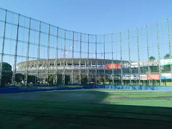 | 1月8日(水)三鷹市D工務店の新年会へ向かう途中、左は工事中のS共同住宅改修工事、右はS邸新築工事現場、解体工事も終わりいよいよ着工です。 | 1月15日(火)快晴の昼時神宮ゴルフ練習場へ、向こうに見えるのは新国立競技場、外観はすかっかり完成した姿をあら合わしている。 帰りに銀杏並木通りにあるカフェ「ロイヤルガーデン」でスイーツを頂きました。 |